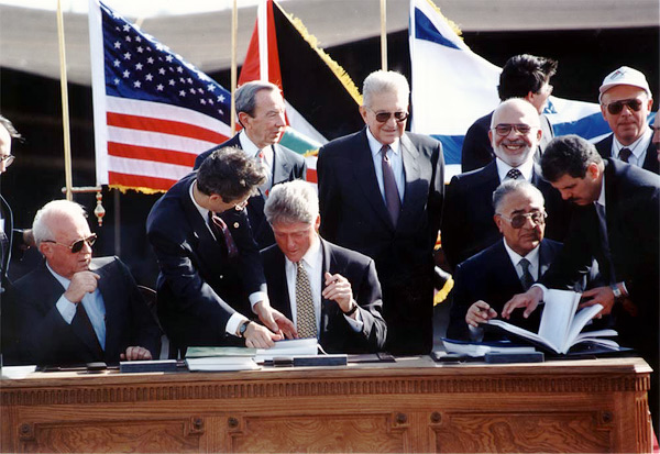 On 26 October, 1994, the governments of Jordan and Israel signed a peace agreement to help stabilise and normalise relations between both states. The agreement is sometimes referred to as the ?Wadi Araba Treaty?, and put an end to territorial disputes among both sides. It was seen by many observers as a bridge for Israel to help build peace with Palestine. The historical agreement was signed at Arabah, at the border between Eastern Jordan and Western Israel as President Clinton was on hand for the signing. Clinton was a major actor in the peace process in the Middle East, and strove to help stabilise and secure the region.